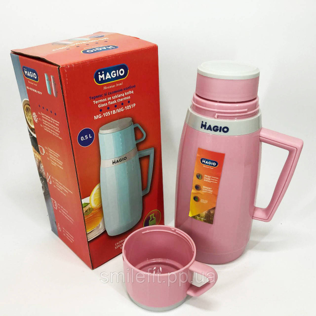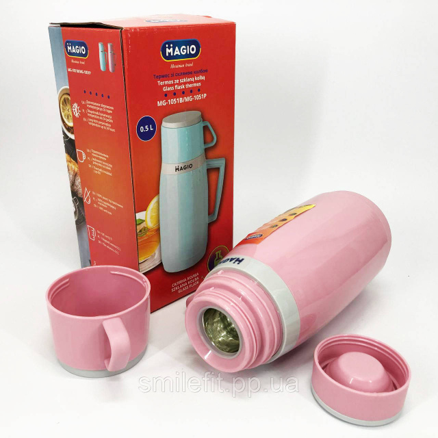 Термос Magio MG-1051P зі скляною колбою, Термос для питної води, термос для дому. Колір: рожевий, Київ