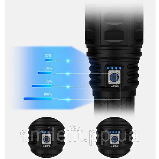 Ліхтар ручний Police AK138-1 WHITE LASER LED PM60-TG з USB-зарядкою, 8х18650, Power Bank, функцією зуму та індикацією заряду, Чорний – Цей ручний...