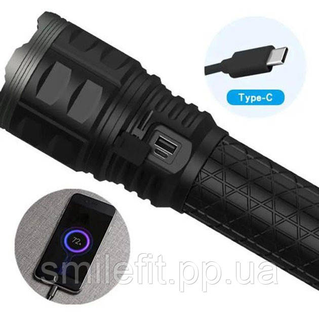 Ліхтар ручний Police AK138-1 WHITE LASER LED PM60-TG з USB-зарядкою, 8х18650, Power Bank, функцією зуму та індикацією заряду, Чорний – Цей ручний ліхтар призначений для використання в туристичних походах, на полюванні та рибалці задля забезпечення охорони промислових объектов. Він працює від перезаряджуваних батарей 18650, які заряджаються через USB-C порт у корпусі ліхтаря.
