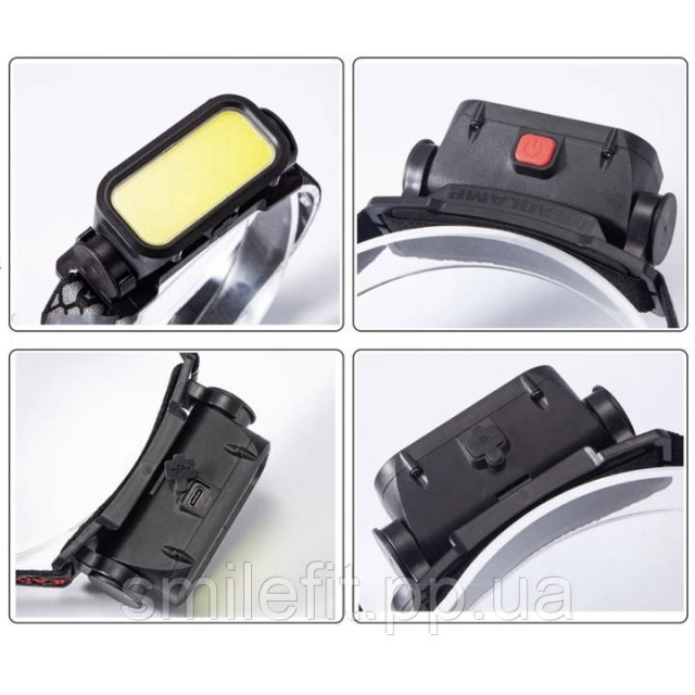 Налобний ліхтар із вбудованим акумулятором на 1200 mAh з USB-виходом для зарядки виготовлений із міцного пластику.