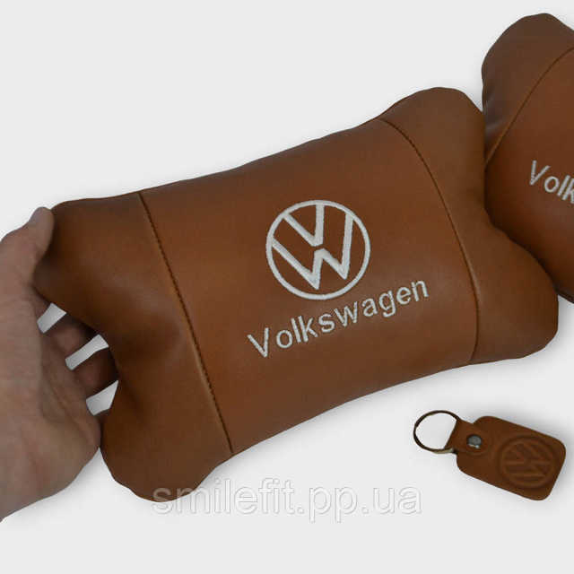 Набір подушок 2шт для автомобіля Volkswagen, з натуральної коричневої шкіри. Подушки на підголовник, Київ