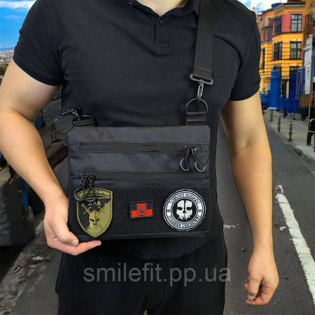 Сумка тактична чорна для скритого носіння з кобурою, чоловічий месенджер з кордури, Київ