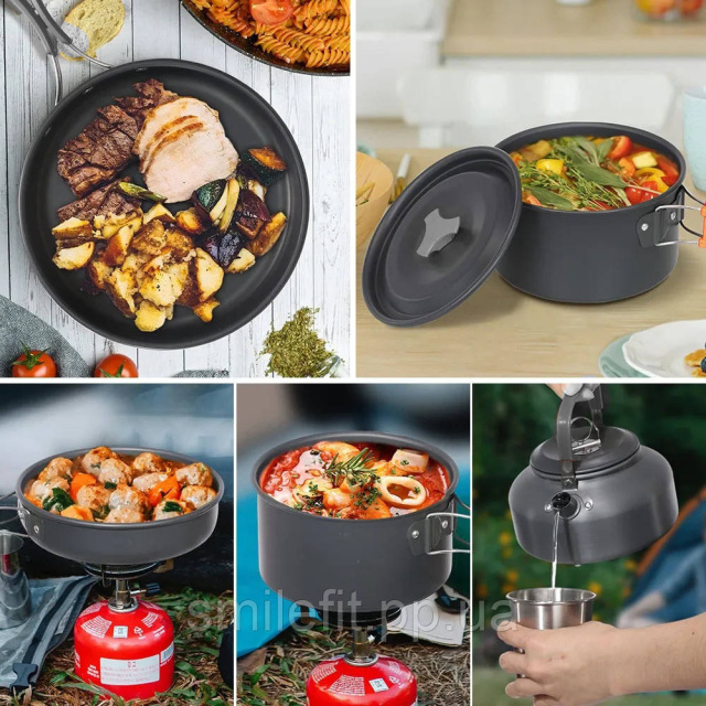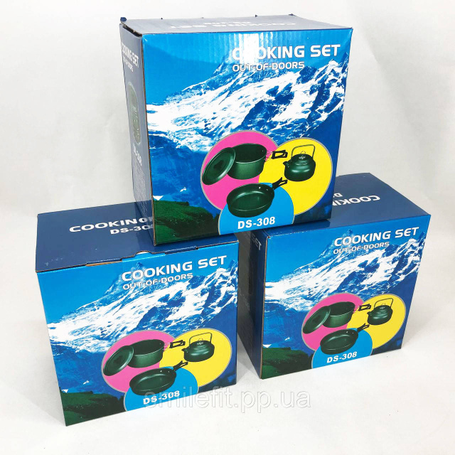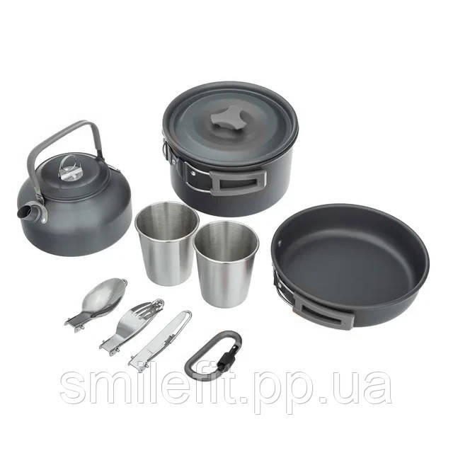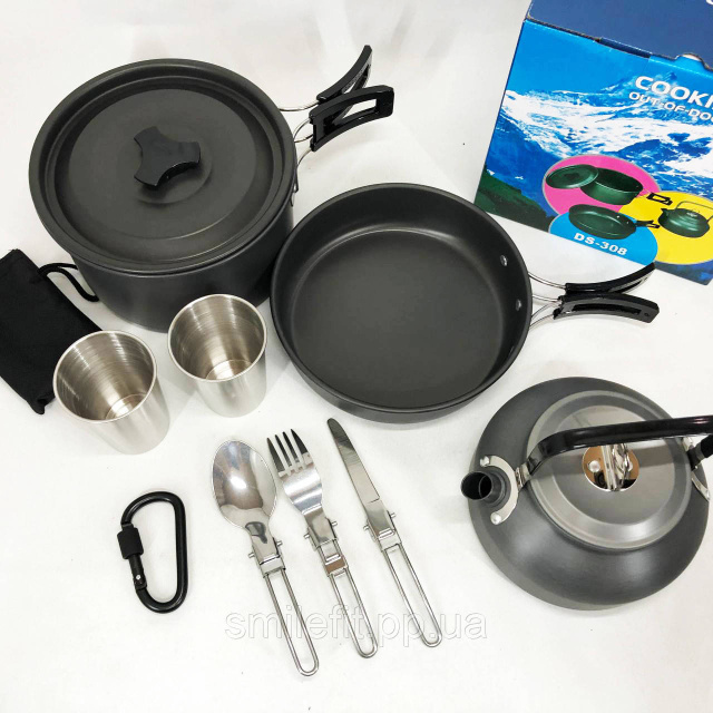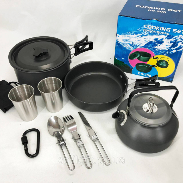 Набір туристичного посуду зі столовими приладами HALIN DS-308, Похідний посуд для пальників, Київ