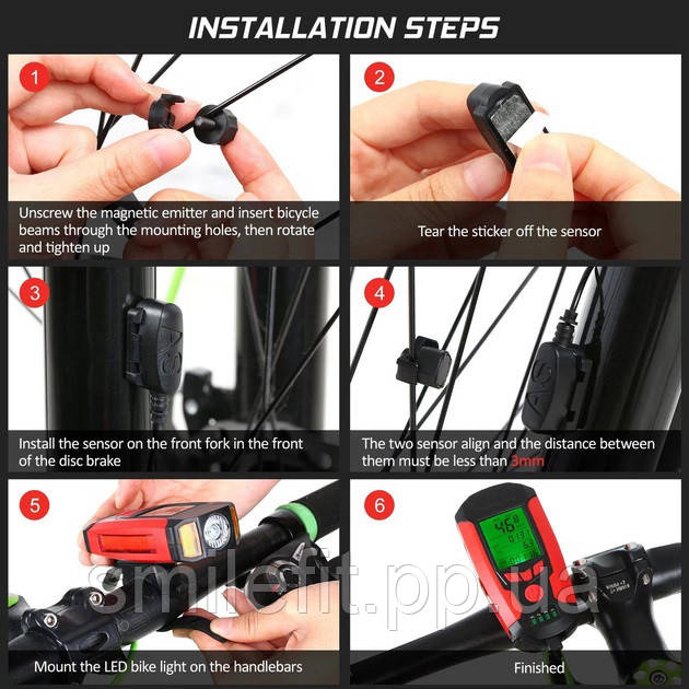 Комплектація-велокомп’ютер, кріплення, USB-зарядний пристрій, виносна кнопка