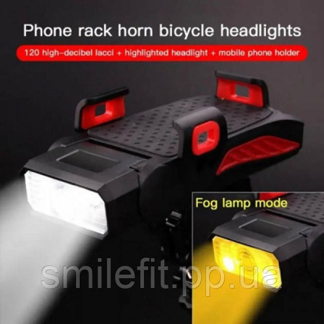 Велофара з сигналом та утримувачем телефону LY-25-2T6 (white+yellow), Довговічний велосипедний ліхтар, Київ