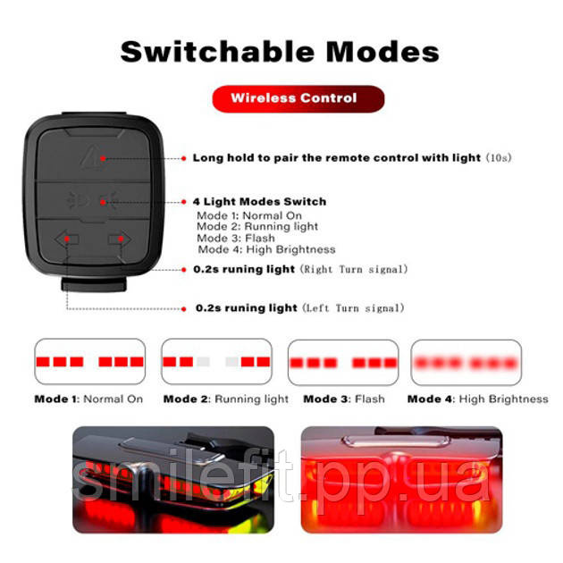 Задній габаритний велоліхтар із поворотами XA-817, дистанційний пульт, Стоп-сигнал на раму велосипеда, Київ