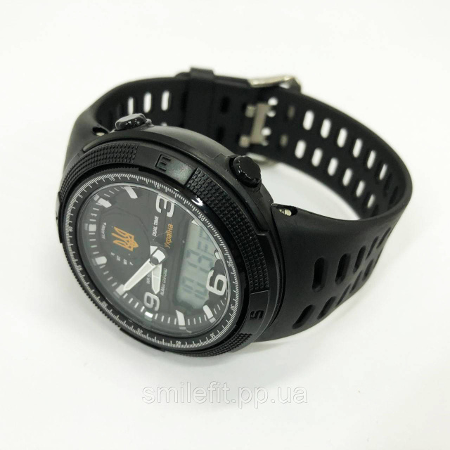Годинник SKMEI 5561/1655BKWT — це гармонійне поєднання сучасного дизайну та патріотичної стилістики. Модель виконана в глибокому чорному кольорі з виразними деталями у вигляді герба України та напису “Україна”, що додає йому унікального характеру. Масивний корпус і зручний ремінець із м’якого полімеру забезпечують комфорт при щоденному носінні.