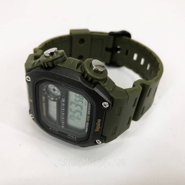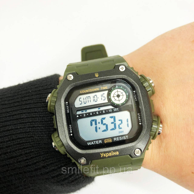 SKMEI 6212/2126AG — це надійний електронний годинник у військовому стилі, створений для активного використання в різноманітних умовах. Завдяки масивному корпусу з брутальним дизайном, міцному ремінцю кольору хакі та виразному дисплею, модель виглядає солідно й функціонально. Верхню частину корпусу прикрашає герб України, а нижню — напис “Україна”, що додає патріотичності та унікальності годиннику.