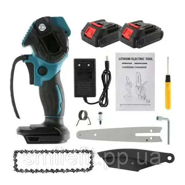 Ланцюг та зручний кейс для зберігання та транспортування. Зручність роботи правою чи лівою рукою, ідеальний варіант чоловікам та жінкам для робіт у саду, домашньому господарстві, обрізки дерев, гілок, бруса діаметром до 10 см. До 80 різів гілок діаметром 4 см на 1 заряді акумуляторної батареї.