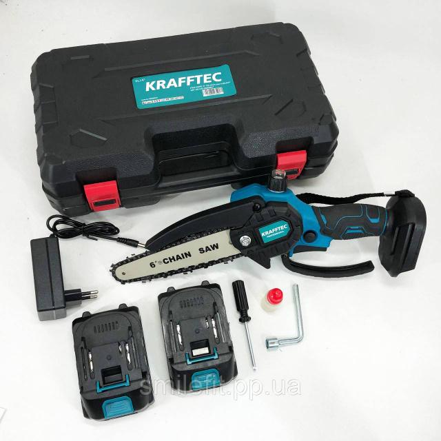 Акумуляторна ланцюгова міні пила 15 см у кейсі Krafftec (36V 4 Ач) + 2 акумулятори та індикатором заряду, Київ