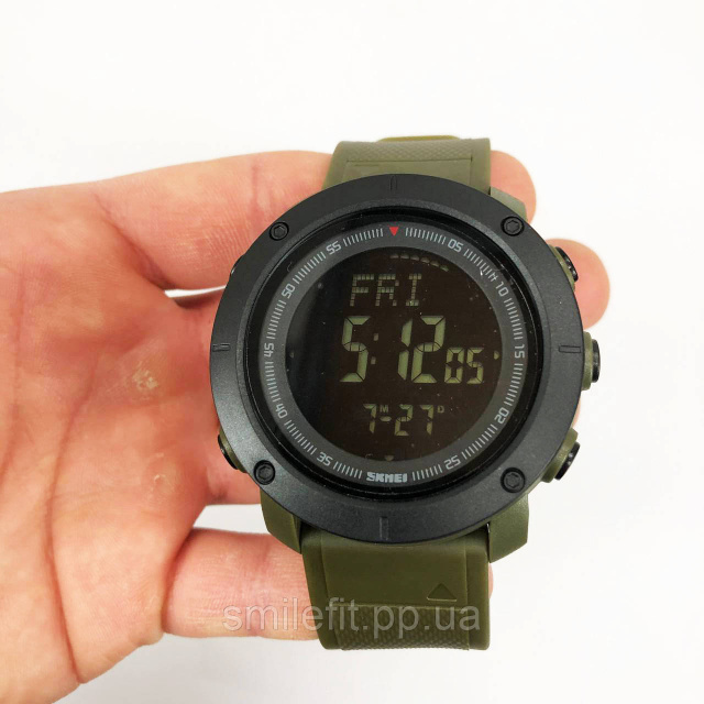 Годинник SKMEI 2095AG створений для тих, хто цінує функціональність і лаконічний стиль. Його круглий корпус із матовим чорним безелем чудово поєднується з оливковим ремінцем, створюючи сучасний мілітарі-образ. Великий цифровий дисплей дозволяє швидко зчитувати інформацію, а зручне управління кнопками робить користування інтуїтивно зрозумілим.