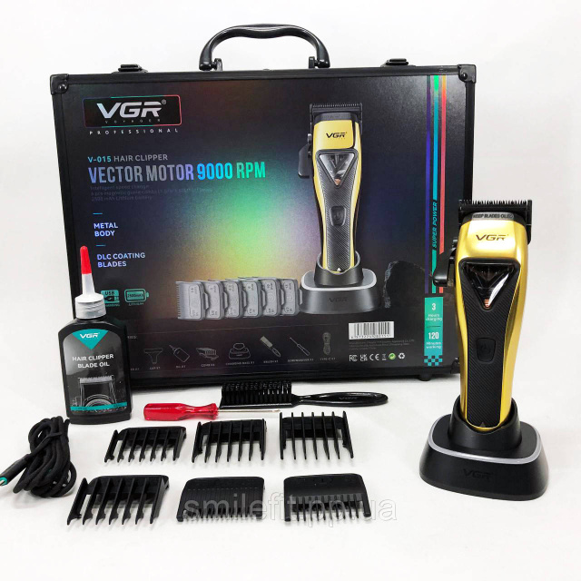 Машинка для стрижки волосся VGR V-015 – це потужний та надійний інструмент для професійного та домашнього використання. Вона забезпечує точність та комфорт завдяки гострим лезам з DLC покриттям та вбудованому векторному двигуну, який працює зі швидкістю 9000 обертів на хвилину. Ця машинка дозволяє стригти волосся на різну довжину завдяки шести магнітним насадкам (1.5 мм, 3 мм, 4,5 мм, 6 мм, 10 мм, 13 мм), що ідеально підходить для створення стильних зачісок.