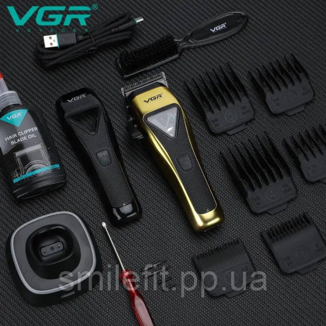 Машинка для стрижки VGR V-015 акумуляторна бездротова професійна 6 насадок, Київ
