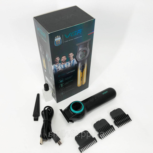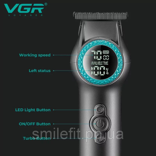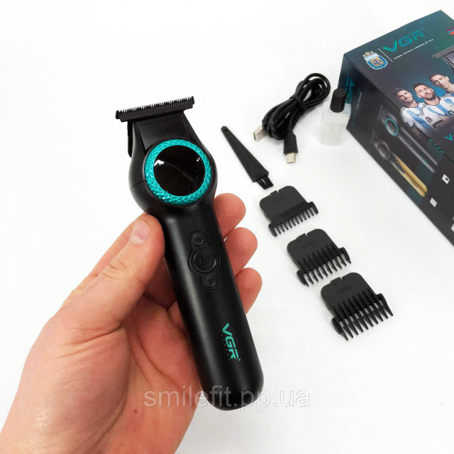 Тример VGR V-990 з 3 насадками, керамічним лезом, TURBO режимом, регулюванням потужності 7000-8000 об/хв, LED підсвічуванням та LED дисплеєм