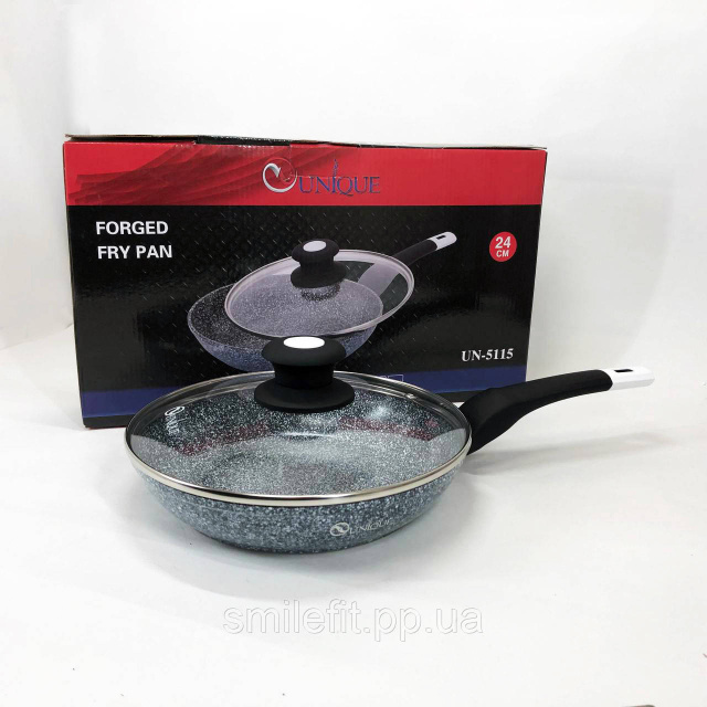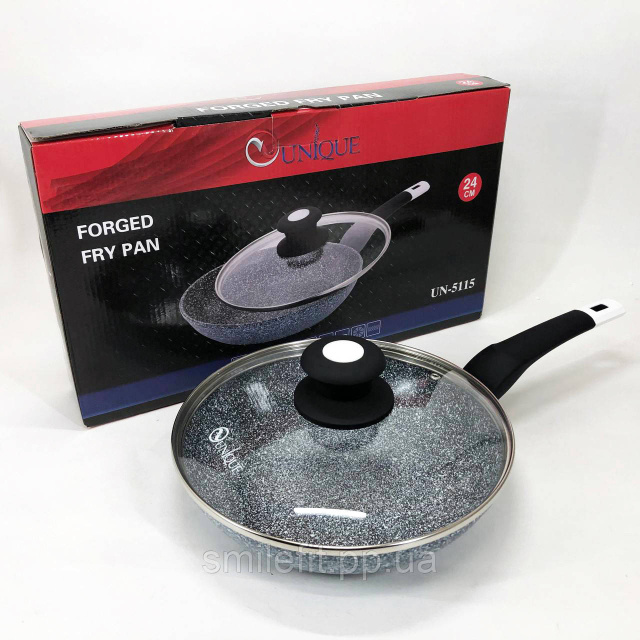 Сковорода UNIQUE UN-5115-24 см із кришкою/граніт світлий, Київ