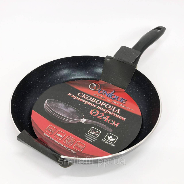 Сковорода UNIQUE UN-5154 24 см. без кришки, Сковорода з антипригарним покриттям та бакелітовою ручкою, Київ