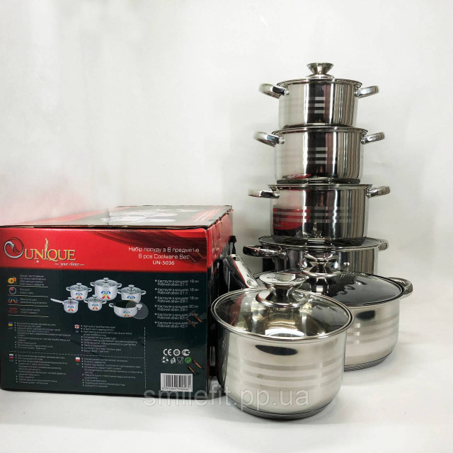 Набор посуды UNIQUE UN-5036 из нержавеющей стали с толстым 5-ти слойным дном., Київ