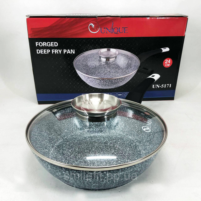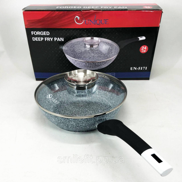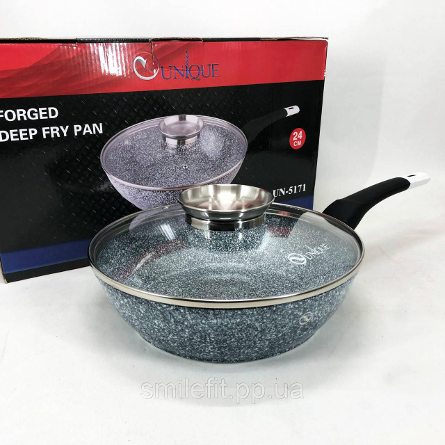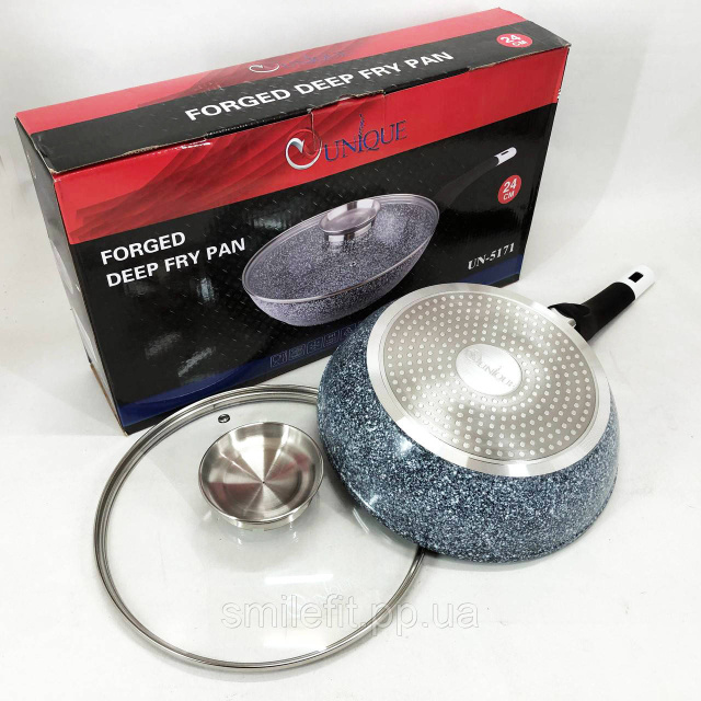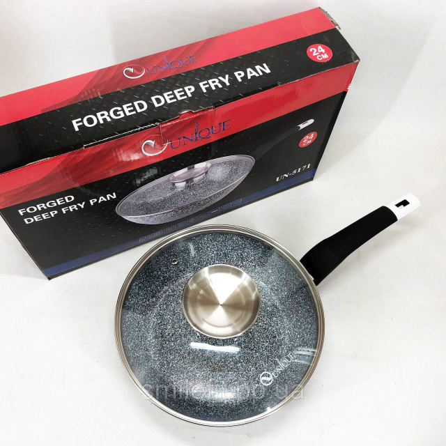 Глибока сковорода з кришкою Unique UN-5171 24 см, Сковорода для приготування на плиті, зручна на кухню, Київ