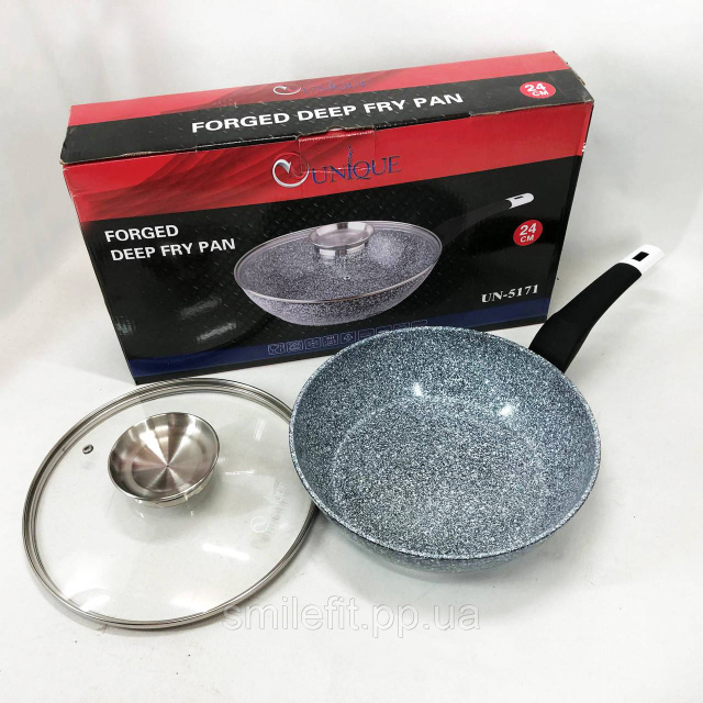 Сковорода UNIQUE Granite coating має антипригарні властивості, зносостійка та довговічна.