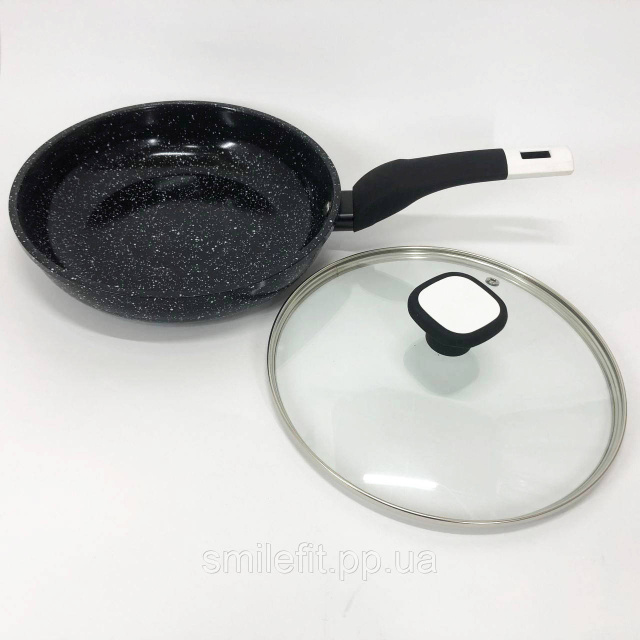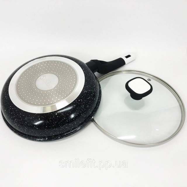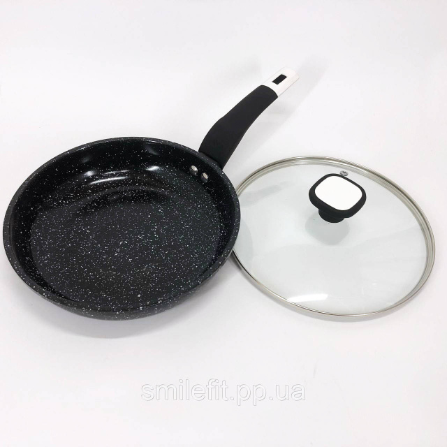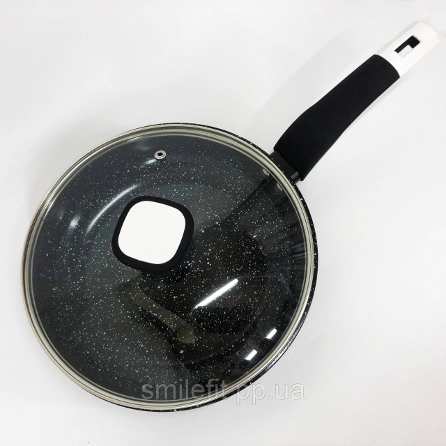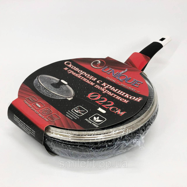 Сковорода UNIQUE UN-5144 22 см з кришкою темний граніт, Довговічні сковорідки, Ідеальна сковорода, Київ
