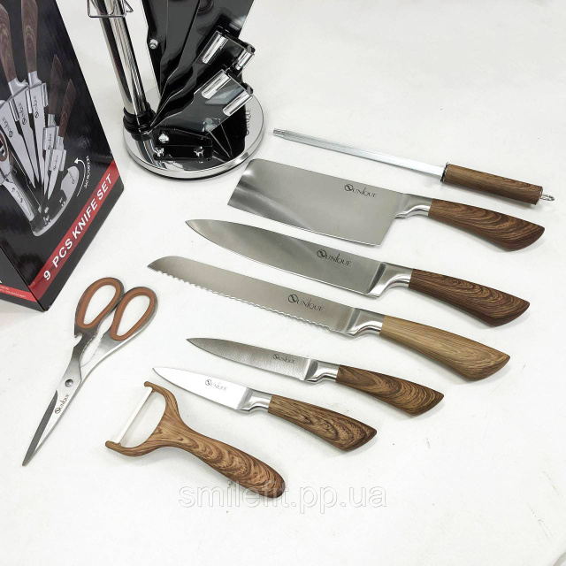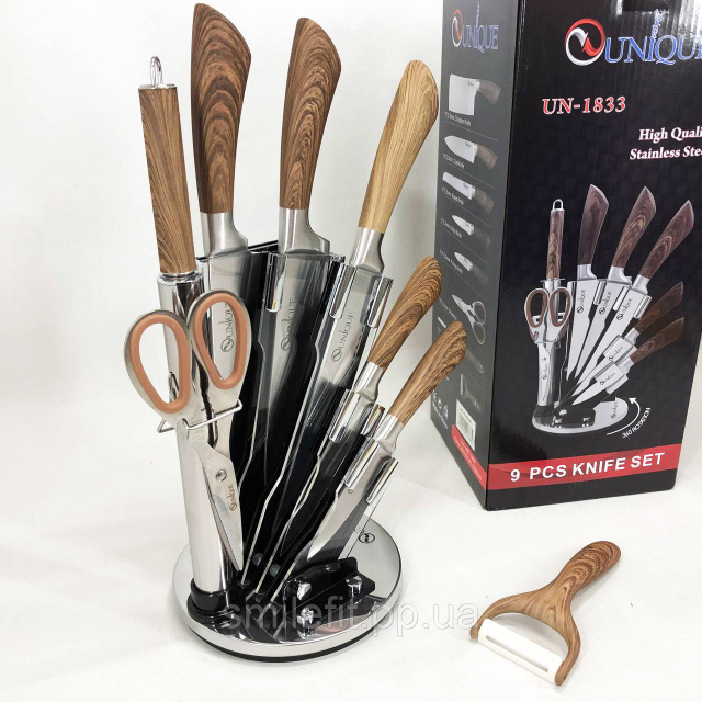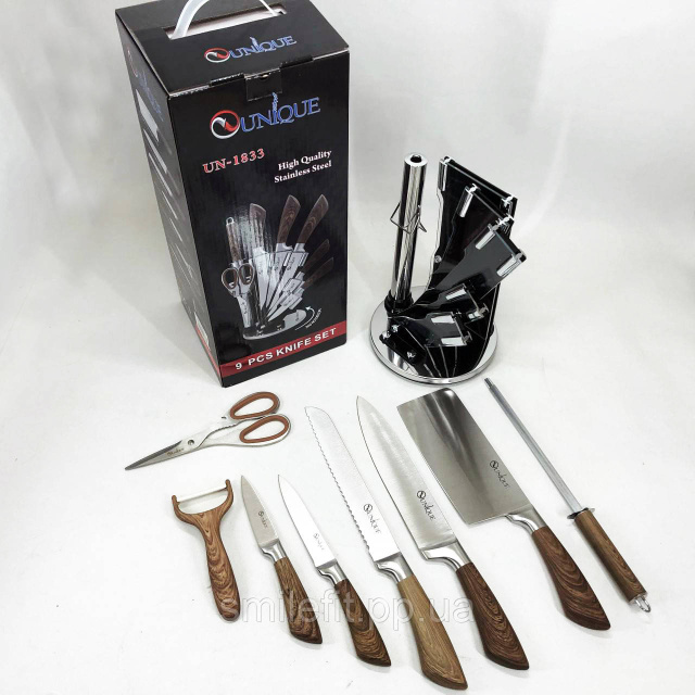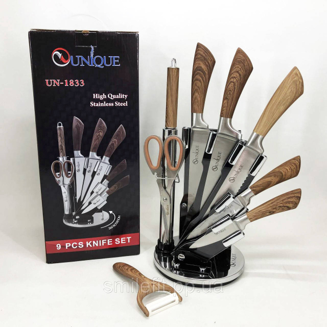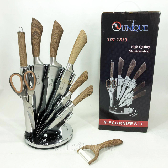 Набір кухонних ножів UNIQUE UN-1833 з дерев'яними ручками та підставкою, Київ