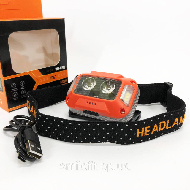 Ліхтар налобний WH-0218-XPG(white+yellow)+SMD(red), Налобний ліхтар для туризму риболовлі та полювання, Київ