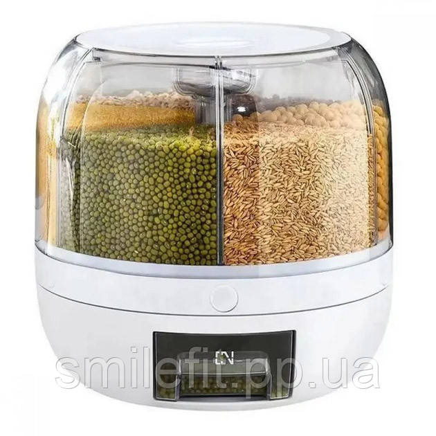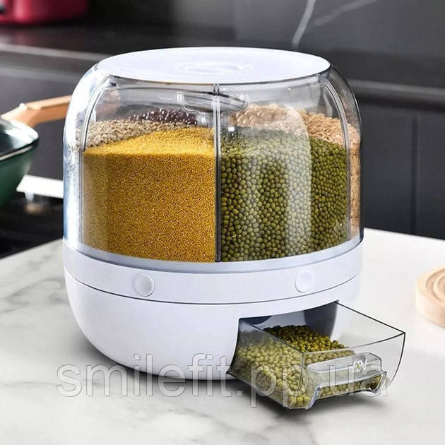 ВЕРТАЄТЬСЯ НА 360.Контейнер для круп, легко і без зусиль обертається на 360 градусів, що допоможе вам у зручності користування крупами.