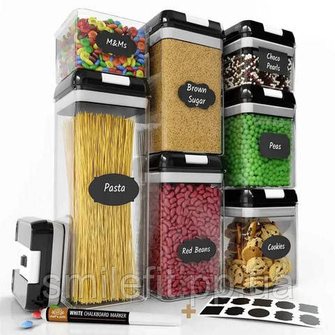Цей набір контейнерів для зберігання продуктів, що складається з семи предметів, забезпечує безпечне зберігання зернових, макаронних виробів, закусок та багато іншого. Ці контейнери бувають різної висоти, але всі вони можуть бути штабельовані для економії місця.