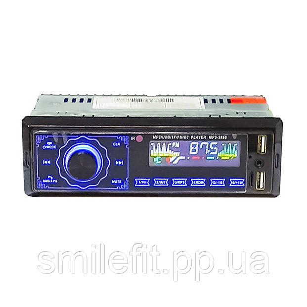 Автомагнітола MP3-3888 вражає своєю функціональністю, зручністю, і дизайном. Відмінно особливістю даної моделі є сенсорні кнопки, наявність Bluetooth, а також вбудовані роз’єми для 2х USB (один для флешки, а інший для заряджання телефону).