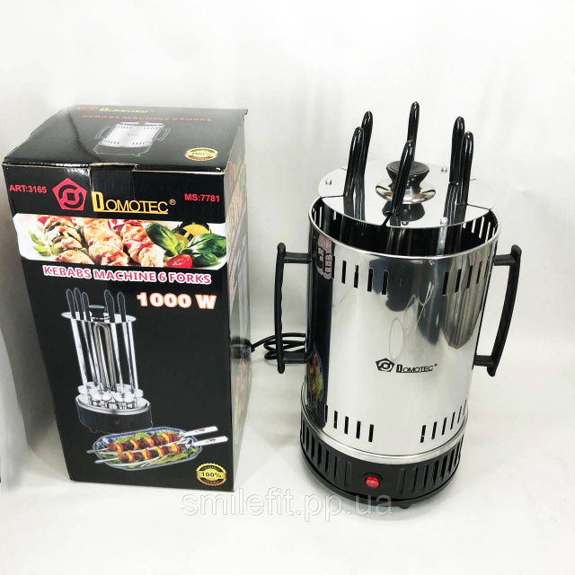 Шашличниця електрична Domotec MS-7781 на 6 шампурів 1000Вт вертикальна з нержавіючої сталі, Київ