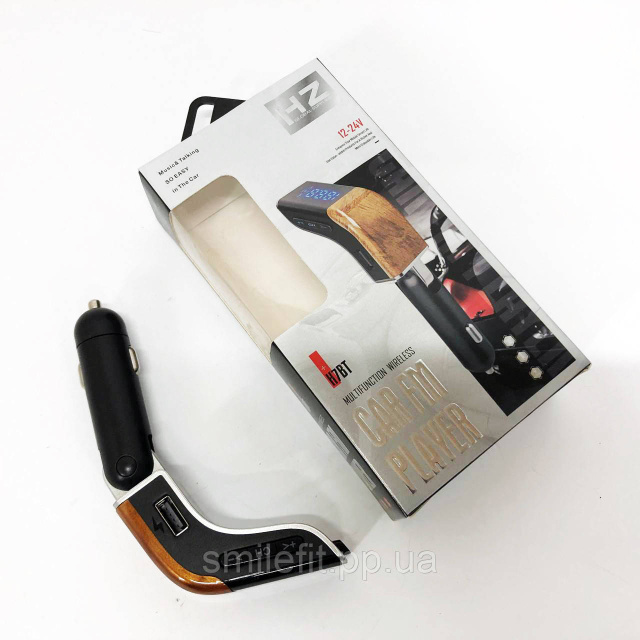 FM модулятор з Bluetooth H7 BT є універсальним автомобільним зарядним пристроєм з USB роз’ємом, Bluetooth з’єднанням, MP3-плеєром, слотом для microSD карти. Цей пристрій має вбудований декодер, який може передавати музичні файли в стерео-систему автомобіля, і може перемикатися на вхідні дзвінки по гучномовному зв’язку, якщо ваш мобільний телефон має з’єднання Bluetooth. Після завершення дзвінка FM модулятор знову перейде на відтворення музики. Ви можете насолоджуватися музикою, заряджати смартфон і відповідати на дзвінки одночасно, не використовуючи рук і не відволікаючись від керування автомобілем.