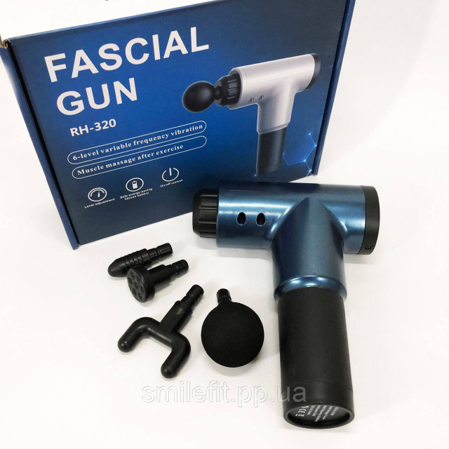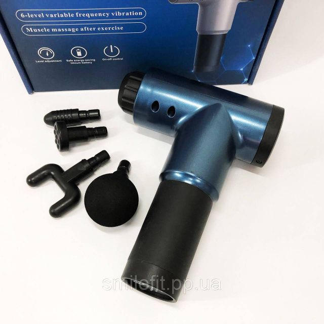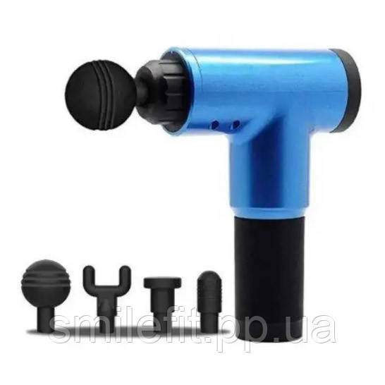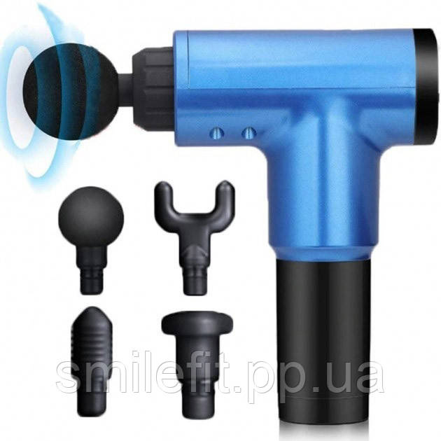 Акумуляторний масажер Fascial Gun KH-320 портативний ручний ударний м'язовий пістолет 4 насадки синій, Київ