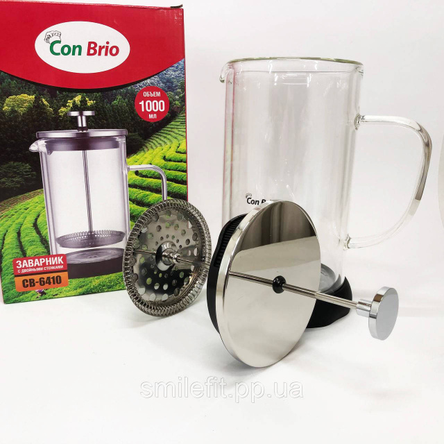 Заварник з подвійними стінками Con Brio 1л CB-6410, Френч-прес з поршнем, Френч-прес з ручкою, Київ