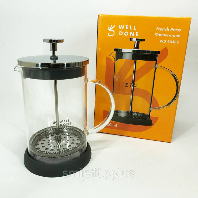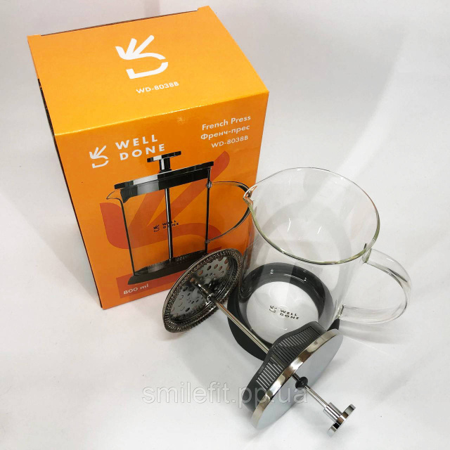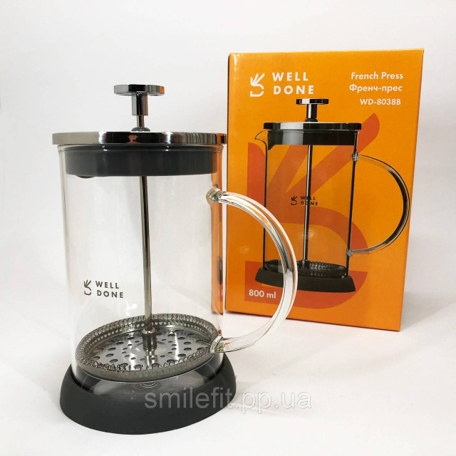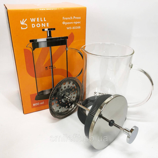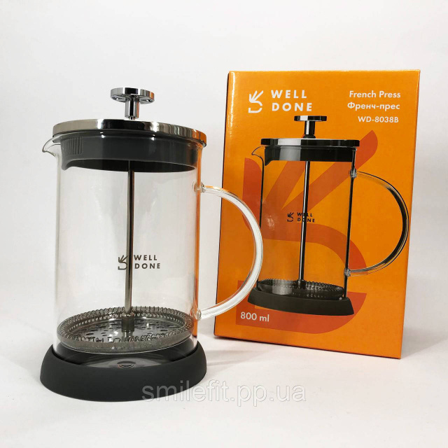 Френч-прес Well Done WD-8038B із термостійкого скла 800 мл, Незвичайний заварник для чаю, Київ