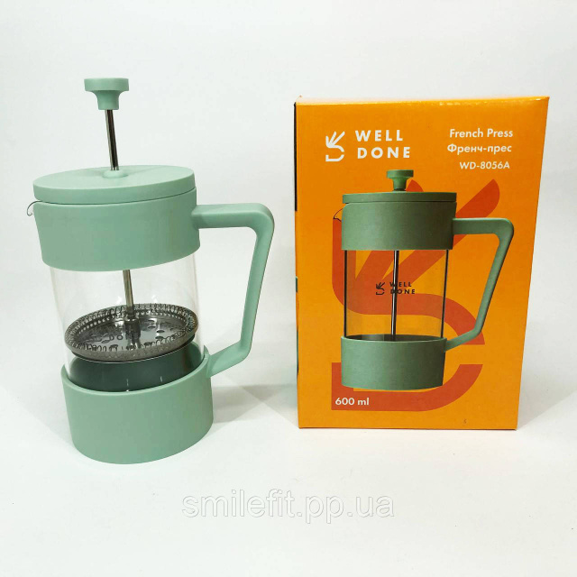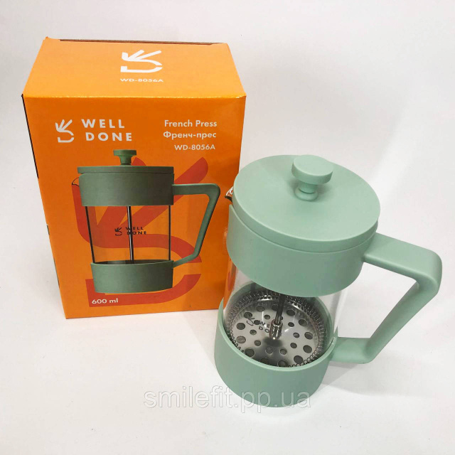 Френч-прес Well Done WD-8056A 600 мл м'ятний, Стильний скляний чайник для заварювання, Френч для чаю, Київ