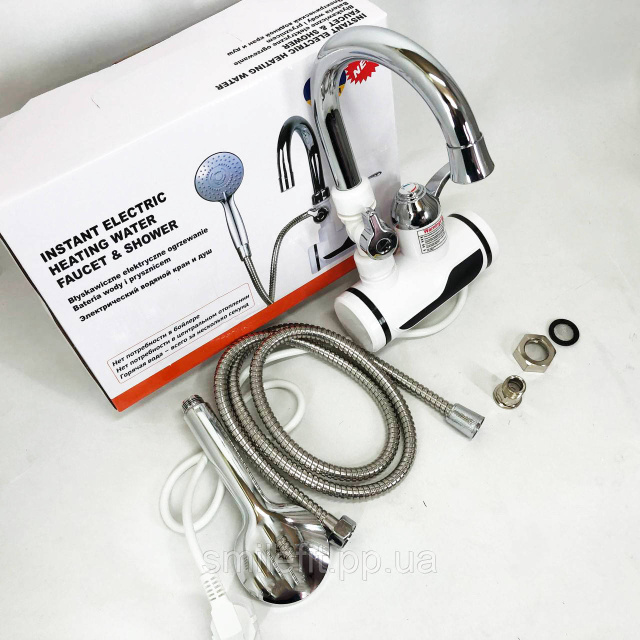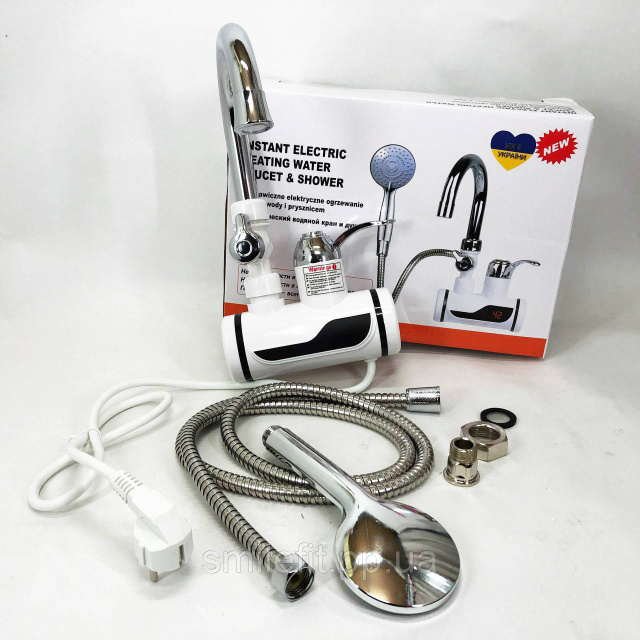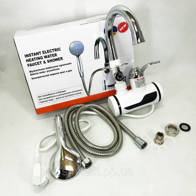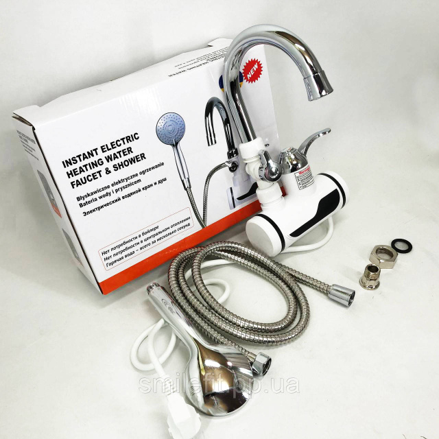 Проточний водонагрівач – це чудова нагода мати постійно гарячу воду, без встановлення громіздкого бойлера! Як відомо, відключення гарячої води відбувається досить часто і як завжди в невідповідний момент. З проточним водонагрівачем гаряча вода у Вас буде завжди! Він встановлюється замість крана, підключається до електромережі і вже за кілька секунд ллється гаряча вода. У приладі встановлено терморегулятор, який швидко нагріває воду. Ця модель йде в комплекті з душем, тому ви можете встановити цей комплект у ванну кімнату. Проточний водонагрівач дуже економний, адже він включається та гріє воду лише тоді, коли це потрібно вам. За допомогою крана-нагрівача можна регулювати температуру води на свій розсуд, просто поверніть ручку, і вода зміниться від теплої до гарячої.