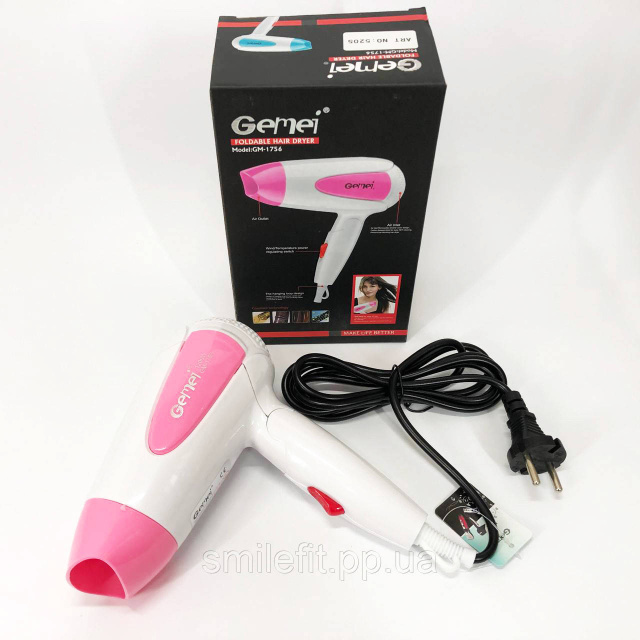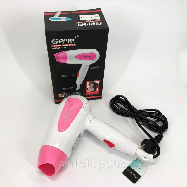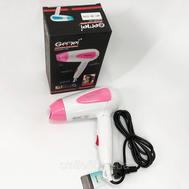 Фен для волосся складаний дорожній Gemei GM-1756 1200 Вт, Домашній фен для укладання. Колір: рожевий, Київ