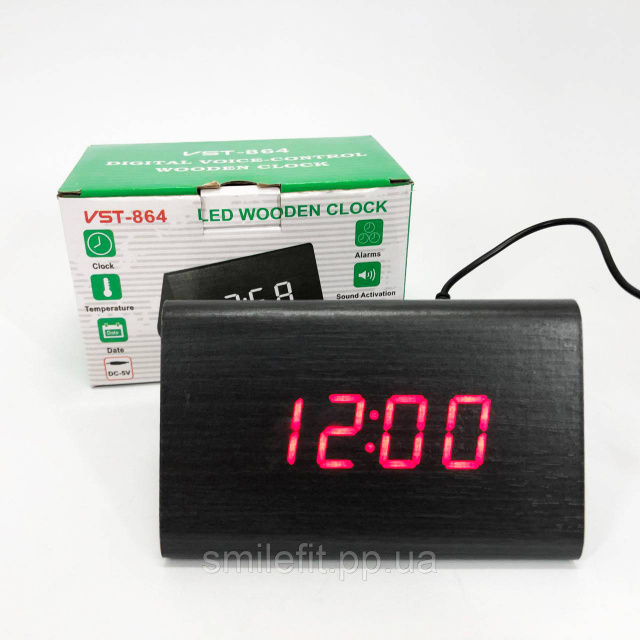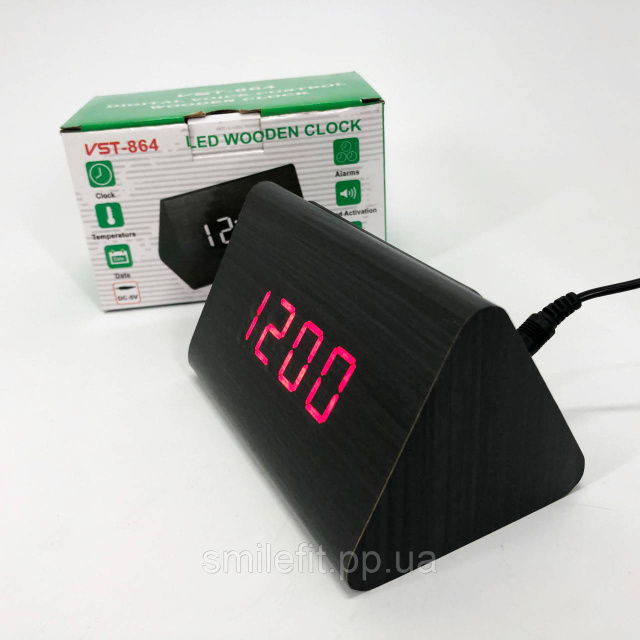 Годинник настільний VST 864 зовні виглядає як брусок дерева. Але варто лише підключити живлення, вони миттєво оживають і перетворюються на багатофункціональний LED годинник. Вдало вписуються практично в будь-який інтер’єр, ідеально гармонують із дерев’яними меблями.