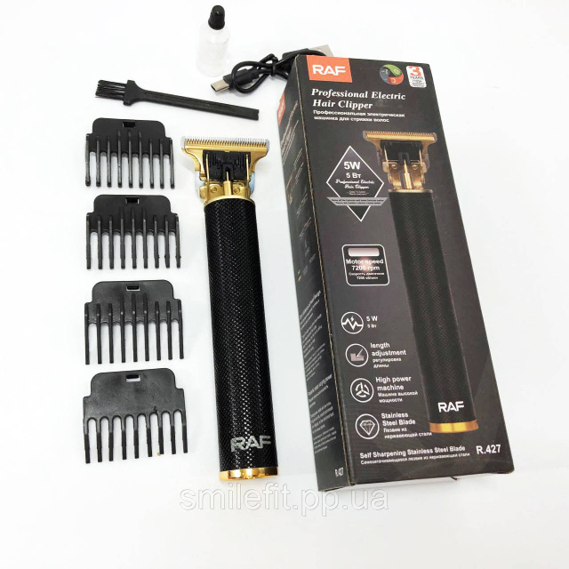 Тример для стрижки волосся RAF R.427 – це портативний пристрій, який використовується для стрижки волосся у різних зонах: таких як волосся на голові, борода, вуса, брови або волосся навколо вух. Тример має невеликий розмір і легку вагу, що робить його зручним для використання як у повсякденному житті, так і в дорозі чи подорожі.