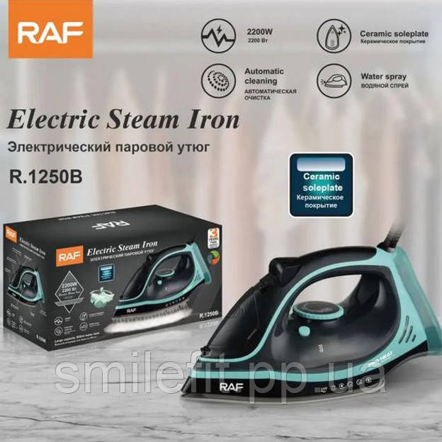 Праска парова RAF R.1250 з керамічною підошвою та функцією самоочищення 2200 Вт. Колір: синій, Київ