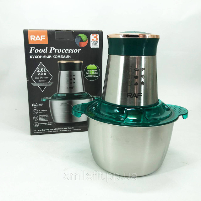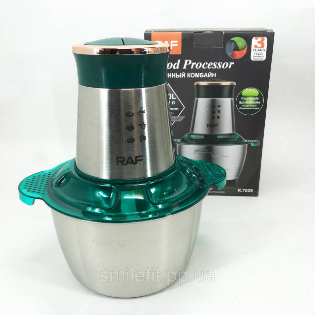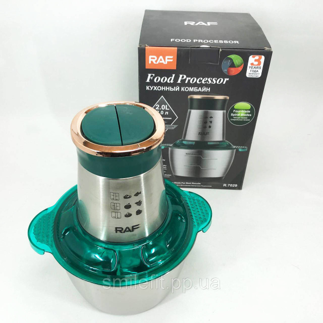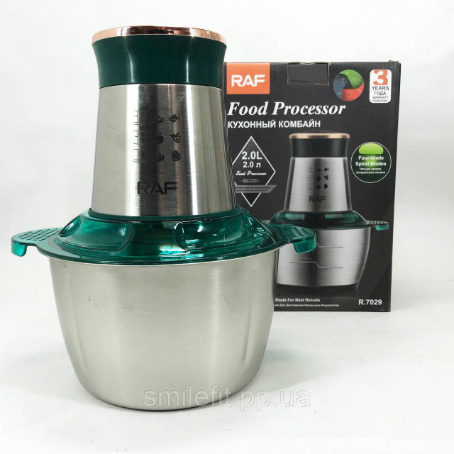 Кухонний комбайн RAF R 7029 – це потужний багатофункціональний подрібнювач, блендер, м’ясорубка, млин для швидкого подрібнення як м’яких продуктів, таких як фрукти, перець, змішування різних соусів, яєць, так і твердих продуктів. м’ясо, овочі, зерна кукурудзи, бобові, коріння рослин, кава, боби, рис, з можливістю застосування не тільки в домашніх умовах, а й для ресторанів та барів.