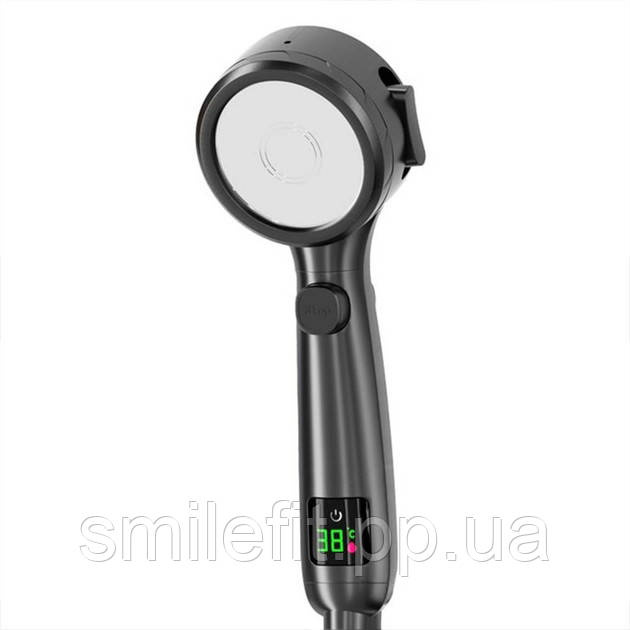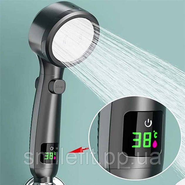Лейка насадка для душу під тиском з індикатором температури – Насадка для душу може безпосередньо зчитувати температуру і допомагати вам вибирати найкращу температуру води, що ідеально підходить для дітей, домашніх тварин і вашого душу! 4 режими різних струменя, включаючи струменевий, масажний, дощовий і потужний струмені. Кожен режим може забезпечити різні природні спа-процедури, дозволяючи вам і вашій сім’ї насолоджуватися розслаблюючим та комфортним душем вдома, а також може використовуватись для щоденного прибирання ванної кімнати. Функція паузи особливо зручна і корисна, коли ви використовуєте мило, гель для душу або миєте волосся, не можете розплющити очі, ви можете натиснути кнопку паузи в будь-який час, що дозволяє уникнути непотрібної витрати води.