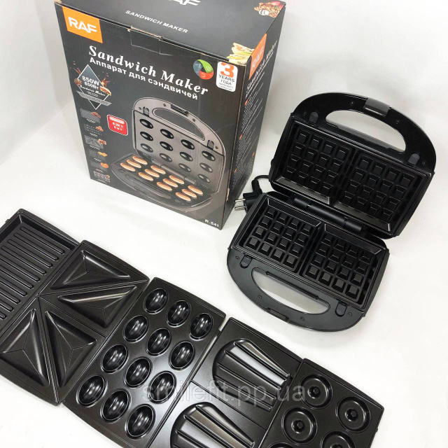 Мультимейкер 6в1 RAF R.541 Гриль притискний сендвічниця вафельниця ліщина бутербродниця, Київ