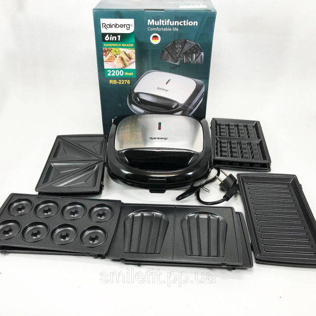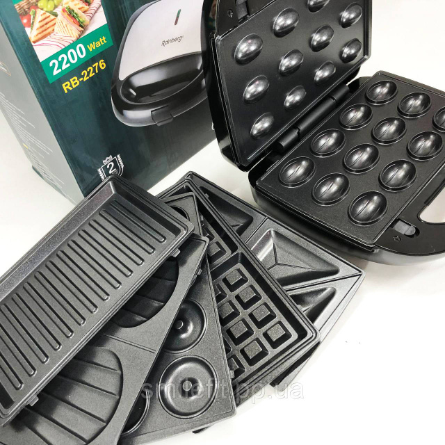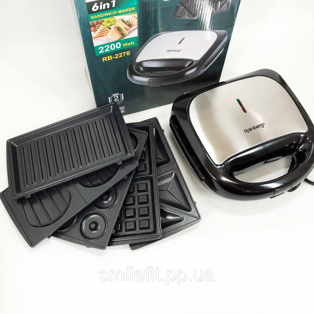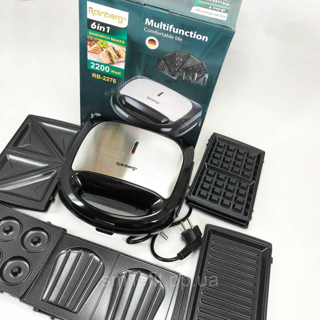 Мультимейкер бутербродниця 6 в 1 Rainberg RB-2276 знімні форми з антипригарним покриттям 2200 Вт, Київ