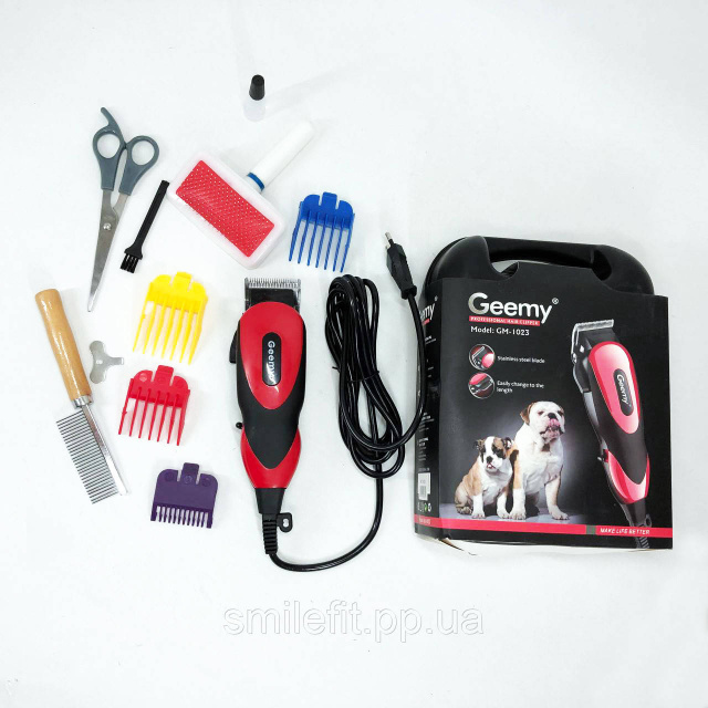 Машинка Gemei GM-1023 для стрижки тварин з 4 насадками для будь-якого типу вовни + ножиці та гребінець, Київ
