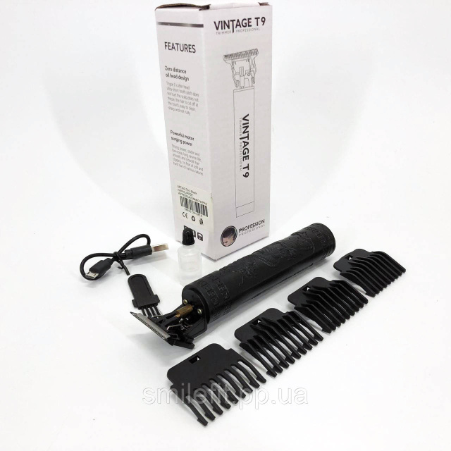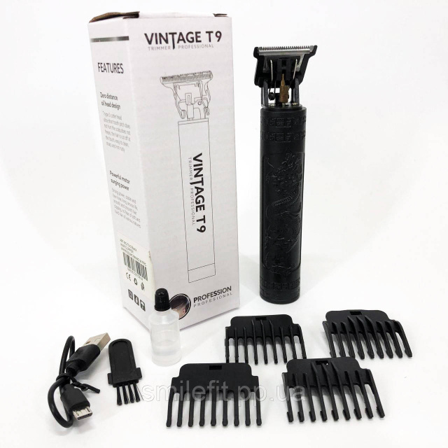 Машинка для стрижки волосся Vintage T9-2 BLACK 4 насадки, Київ