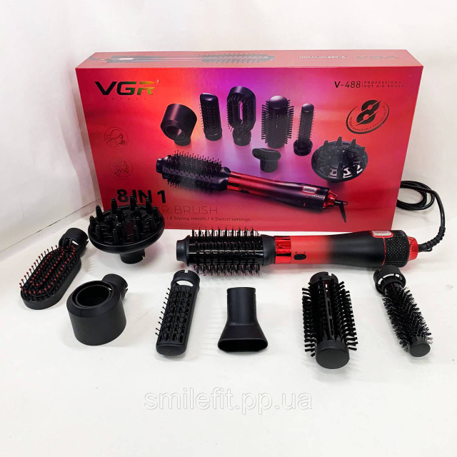 Фен-щітка стайлер VGR 8 в 1 V-488. Колір: червоний, Київ