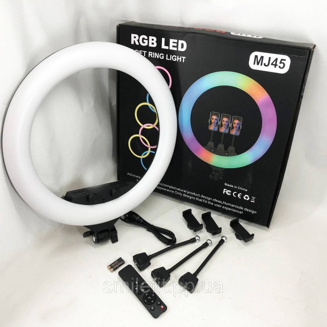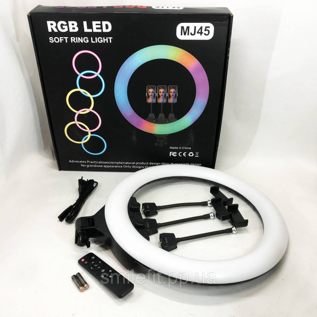 Кільцева LED лампа RGB MJ45 Ring 45 см комплектація адаптер із вбудованим кабелем, тримачі для телефону, пульт, Київ
