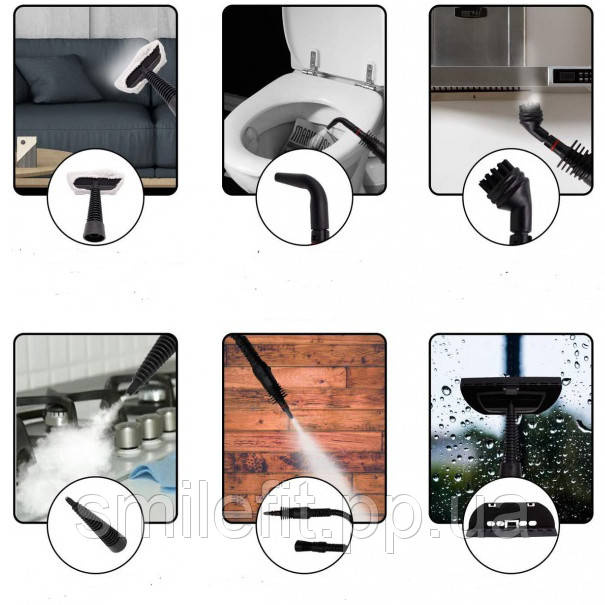 З парогенератором Steam Cleaner ви запросто очистите від жиру плиту та духовку, кахель, раковину та унітаз, дзеркала та скла. Пара проникає всюди, тому він видаляє бруд навіть з найвужчих щілин, в які неможливо дотягнутися ганчіркою і губкою! А як здорово парогенератор очищає садові меблі та салон автомобіля — довгий шнур дозволяє вам працювати з приладом навіть на вулиці!