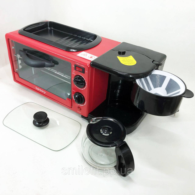 Електрична піч для сніданку 3в1 Rainberg RB-2286R 3800 Вт (піч, кавоварка, поверхня для смаження), Київ